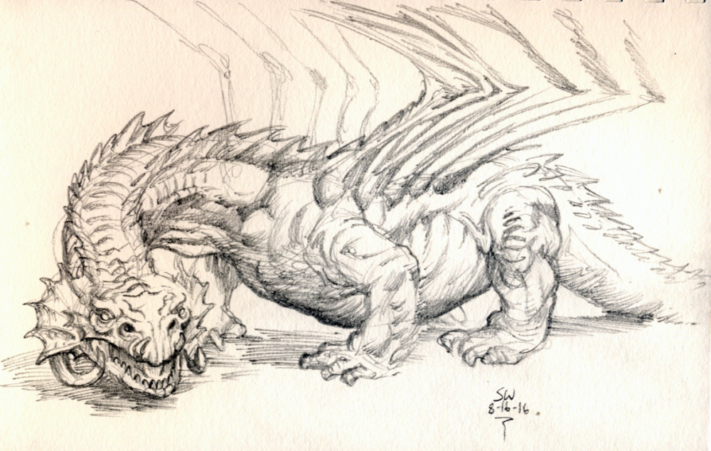 Inaugural blog post time! I spent some time drawing with my pals Heather Hudson and Dan Gelon today and came up with some knights and a sort of Blake-esque dragon.